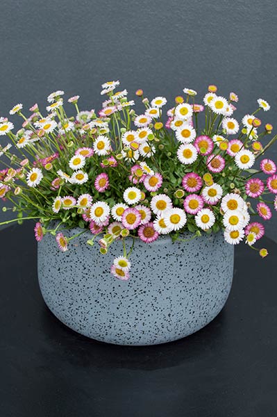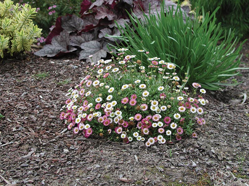 An improved variety of the popular 'seaside daisy' which will not become invasive like its unruly relatives and with the added bonus of a low growing and compact habit. Forming a neat, dense dome of foliage it will produce a sparkling display of dainty little daisy flowers which will firstly open as white and then fade through to various shades of pink and wine red. Requiring little attention it will flower from spring through summer.