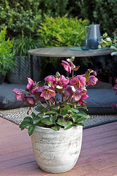 With masses of delicately mottled burgundy-red flowers sitting neatly above lush green foliage in the depths of winter, Charmer will gladden your heart when much of the garden is bare. A smaller and more compact habit than other Hellebores, Charmer is well-suited to patio pots, small gardens and tight spots. With a flower display that lasts for a couple of months you can enjoy the winter joy in the garden, as cut flowers or you can even bring the whole plant indoors for a spectacular indoor flower display, ‘indoors for a moment, outdoors for a lifetime’.