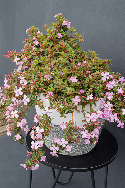 - Abundant display of soft pink flowers stud the foliage from late spring through to autumn.