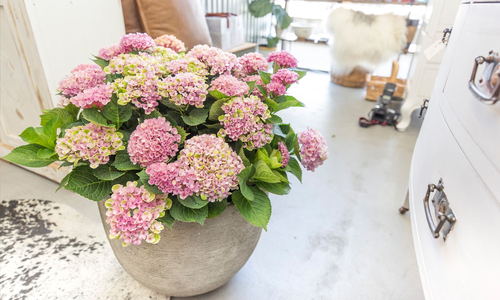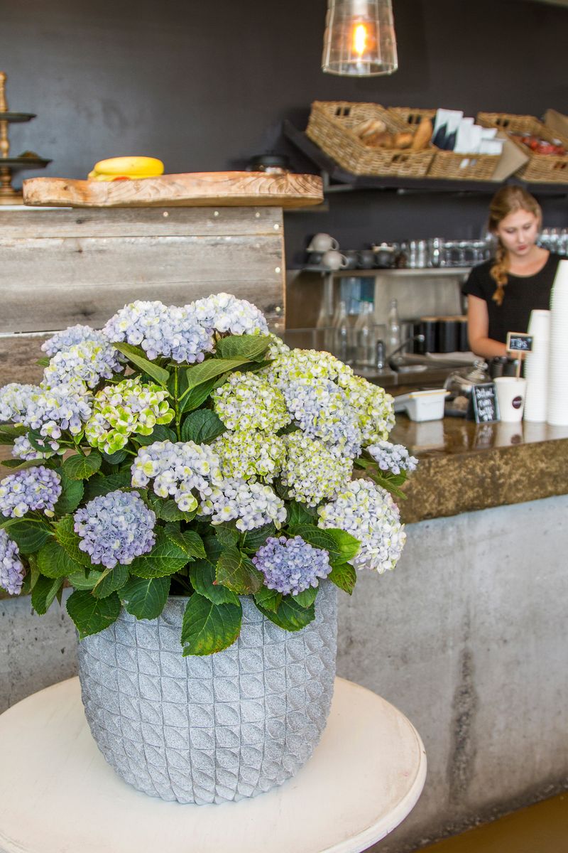 the soil stays moist. Indoors, keep away from heat sources and place outside in the winter months to rejuvenate and ensure full flowering in the warmer months. To keep initial flowers blue, apply powdered sulphur once a year in early spring