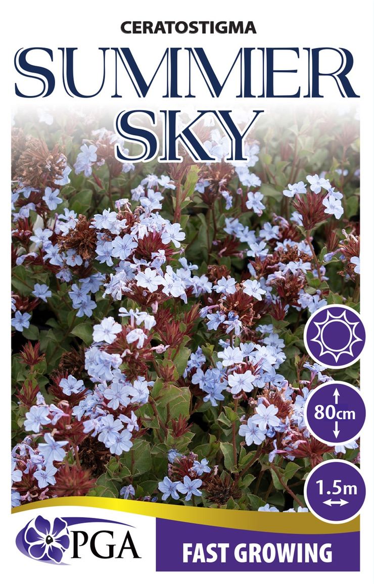 Botanical name Ceratostigma plumbaginoides Summer Sky