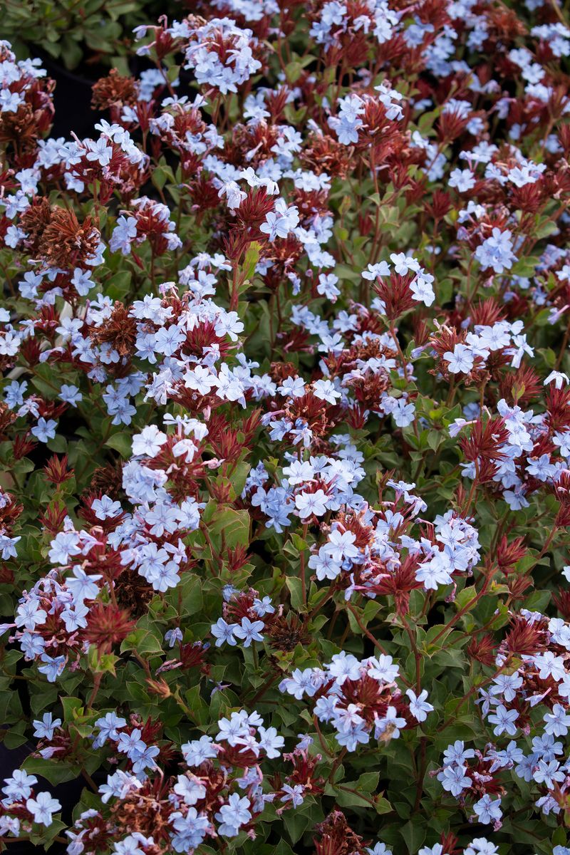 - Powder blue flower heads through the warmer months.